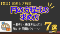 ・2次方程式ではない場合は、図形の位置関係で解いていき、詳細部分で数式利用。