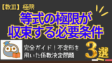 の2つです。流れとしては、(1)の等式を(2)の不等式に代入する感じです。実際の流れは、問題演習の部分で解説しているので、そちらを確認してみましょう。