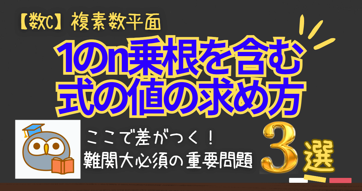 今回は、1のn乗根を含む式の値を計算する問題について分かりやすく解説していきます。具体的には、n乗根の和や積を含んだ式の値やcosの値を求める問題、複素数平面のn乗根と平面図形の融合問題について本記事では扱います。