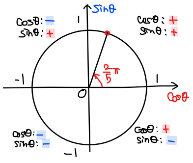 &\small \displaystyle = \cos \frac{2\times \color{#ef5350}5\pi}{5} +i\sin \frac{2\times \color{#ef5350}5\pi}{5} \quad ◀ ド・モアブルの定理\\